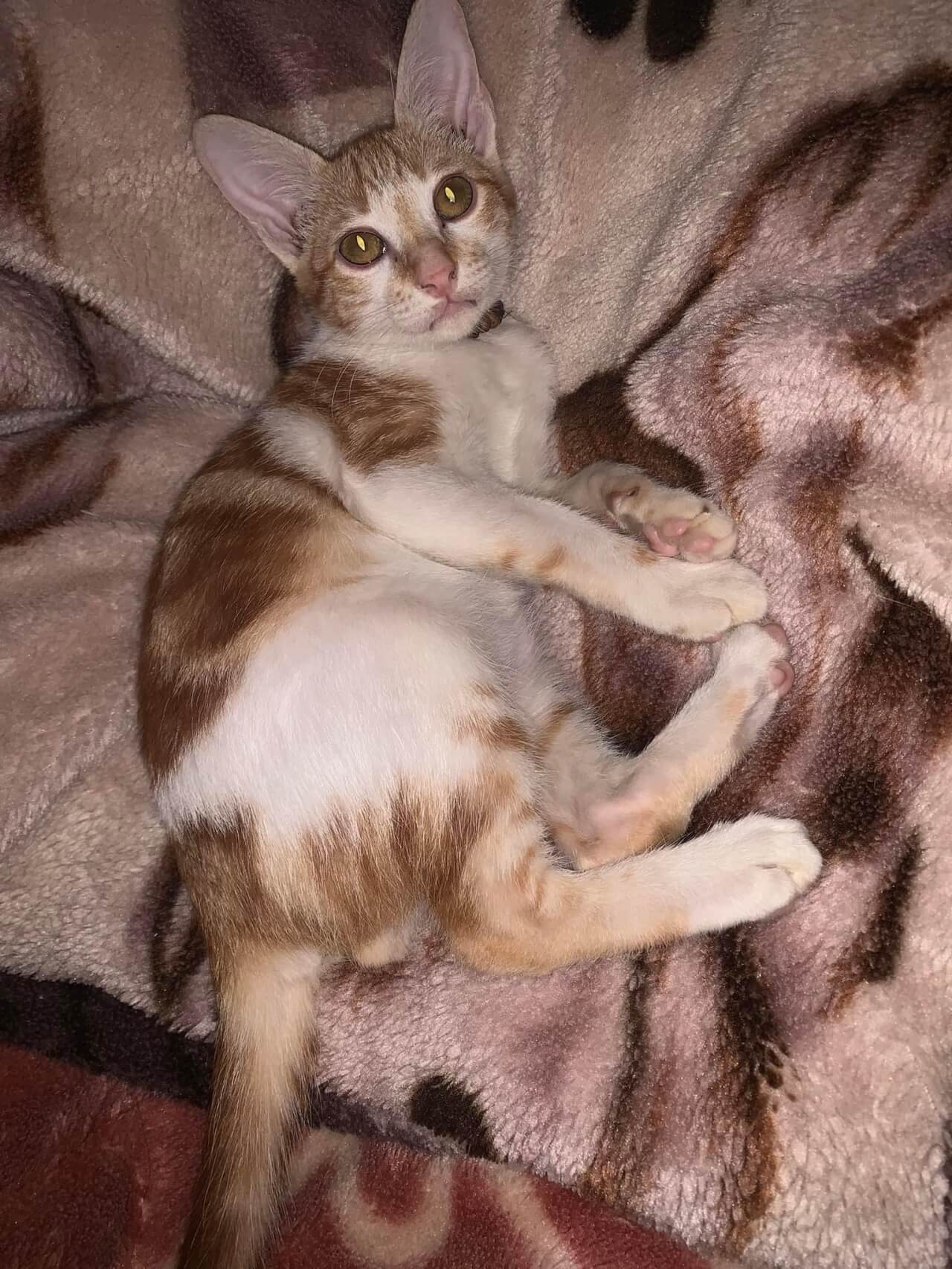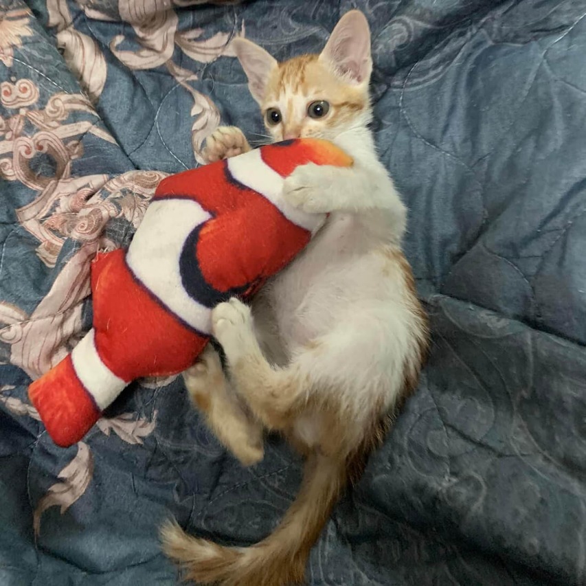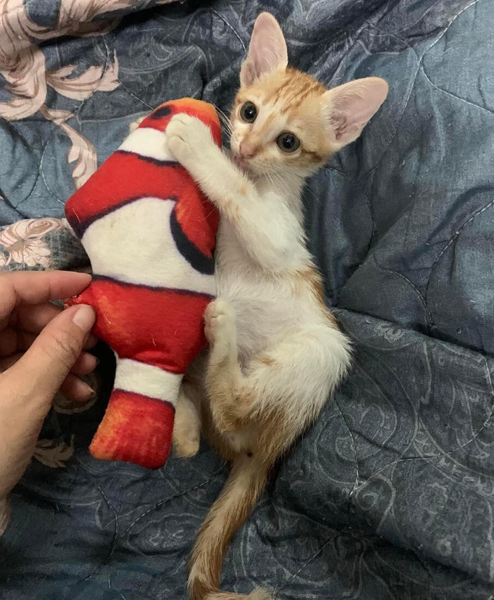 Bắp, a 1.5-month-old male cat was found on the street by the volunteers. He was having mild diarrhea and then moved to foster care