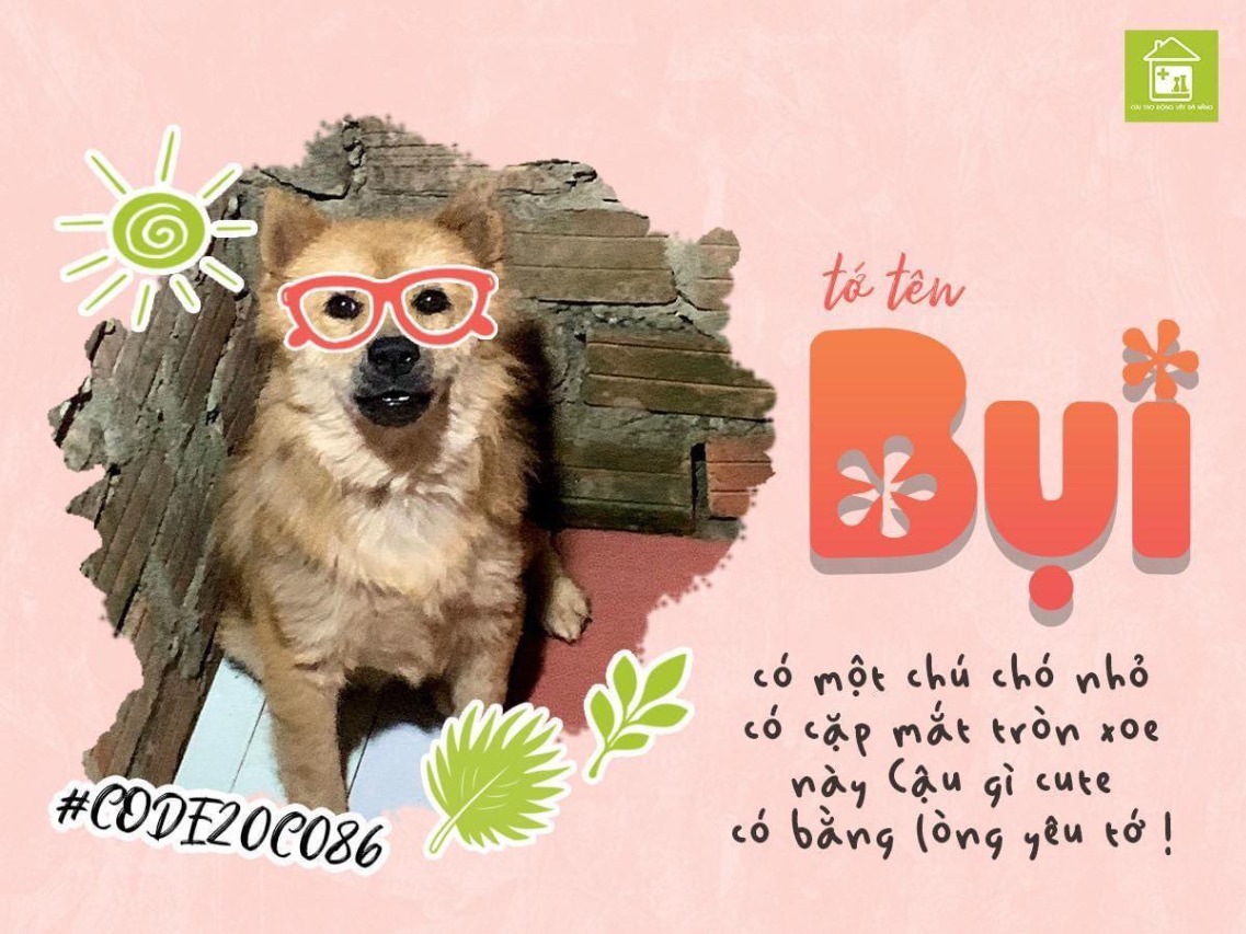 Đây là một case cứu hộ ở khu vực Điện Tiến - Quảng Nam. Người báo tin khi đó cho biết Bụi đã lang thang ở đây gần một năm, hàng ngày báo tin vẫn cho Bụi ăn uống nhưng Bụi rất cảnh giác, chờ báo tin rời khỏi thì mới mon men tới ăn. Tình trạng sức khỏe lúc đó của Bụi khá nặng: bị ghẻ Demodex và chân sau có dấu hiệu bị tật hoặc gãy. Phòng khám phải lưu trú cho Bụi hơn 03 tháng để điều trị dứt điểm các bệnh lý.