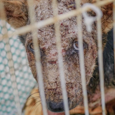 Mây ăn uống được, tình trạng bị ghẻ nặng, kế phát viêm da, nhiễm trùng. Xét nghiệm máu kiểm tra Mây thiếu máu khá nặng, test kiểm tra 3 nhóm ký sinh trùng máu âm tính.