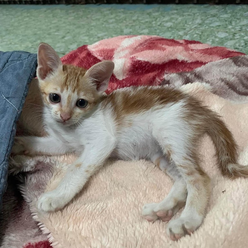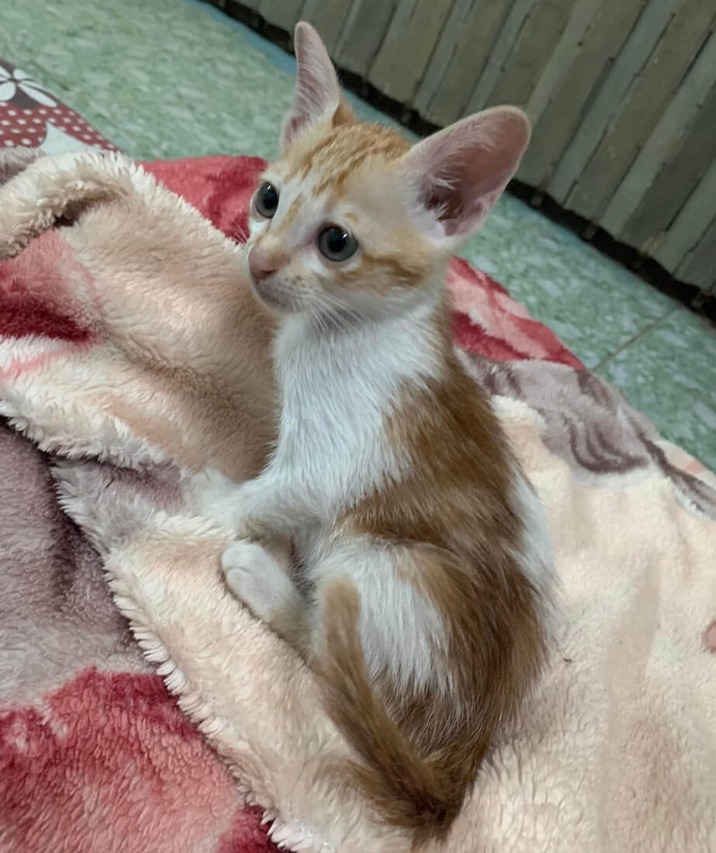 Bắp, a 1.5-month-old male cat was found on the street by the volunteers. He was having mild diarrhea and then moved to foster care