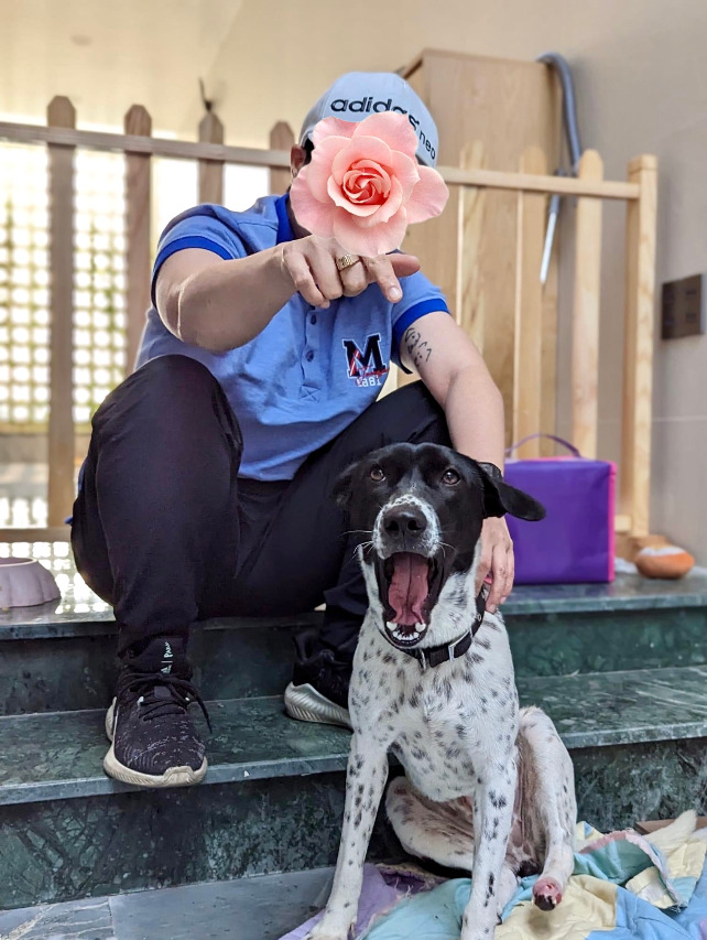 Bò Sữa là bé chó đốm lai, ngoại hình pha hai màu đen trắng cùng chút nọng ở cổ nên trông rất giống một chú bò sữa con đáng yêu. Bé bị tàu lửa cán dập ngón chân và nằm viện tận 3 tháng để điều trị, đến hiện tại thì có thể coi là ổn định, khoẻ mạnh rồi.
