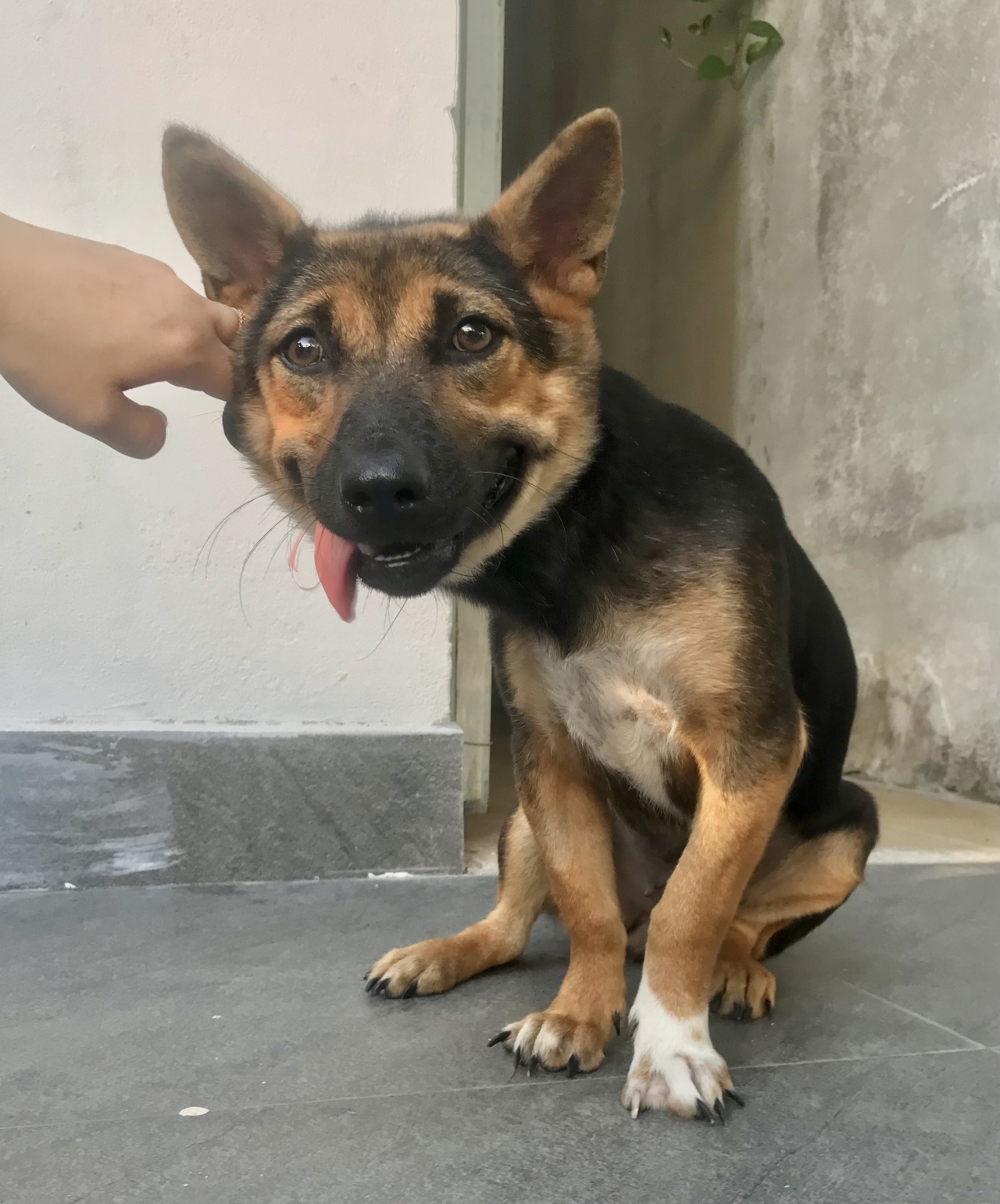We call her Mây (Cloud in Vietnamese) with the hope that her life will be as pure and peaceful as the clouds in the sky, she won’t have to wander around with scabies all over her body and 4 swollen, festering legs, seeking for every meal, and hiding from human.