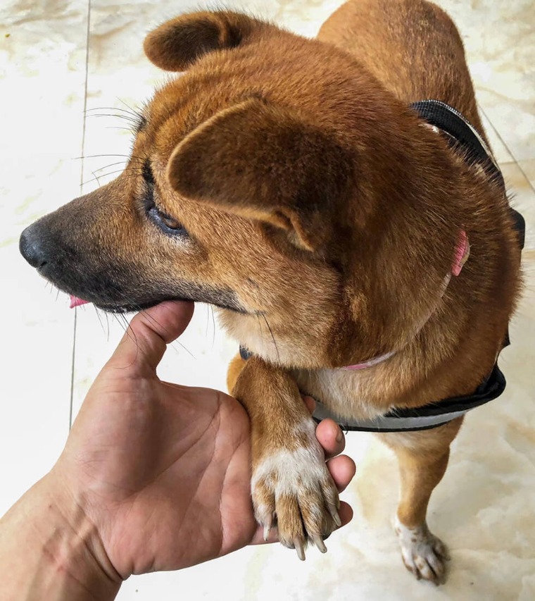 #CODE21C061, Đông đi lạc, bị thương ở miệng, chảy nước như bị mủ, đói lâu ngày do không ăn uống được. Tình trạng lúc đó đang bị hóc xương, lưỡi bị tổn thương, hoại tử khá nặng. Gần một tháng sau cứu, Đông sức khỏe ổn, ăn uống tốt. Tới thời điểm hiện tại Đông hoàn toàn đủ điều kiện tìm chủ.